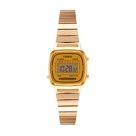 Descubre el Reloj Casio LA670WGA-1DF para Mujer: un clásico reloj digital con un diseño ultracompacto y elegante acabado dorado. Este modelo es perfecto para quienes buscan un accesorio retro, funcional y con mucho estilo.