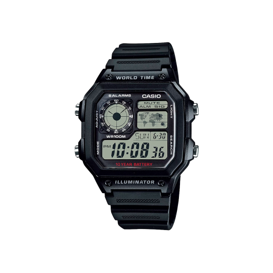 Cuenta con cronógrafo de precisión, hora mundial, temporizador y calendario automático. Perfecto para quienes buscan estilo, tecnología y resistencia en un solo reloj.