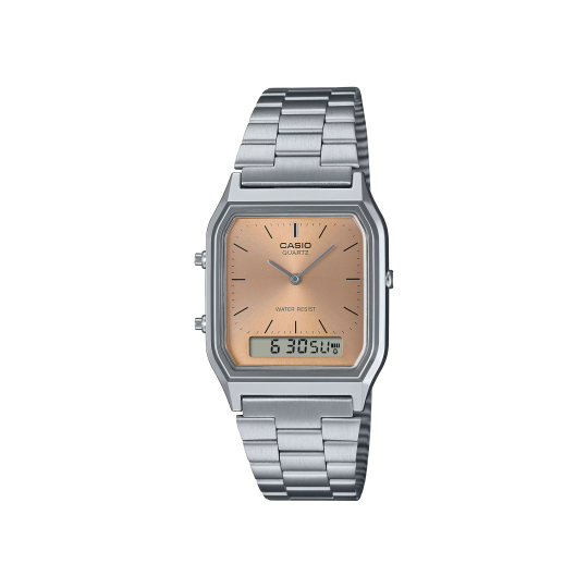 Ofrece hora mundial, cronómetro, temporizador, calendario automático y múltiples alarmas. Además, su dial deportivo con anillos metálicos y pantalla digital le da una lectura clara y moderna.