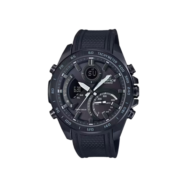 Casio ECB-900PB-1A: el reloj perfecto para los que aman la precisión y el diseño profesional. Equipado con Bluetooth y carga solar, este modelo destaca por su resistencia, funcionalidad y estética deportiva completamente en negro.
