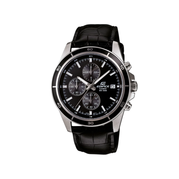 Casio EFR-526L-1A: elegancia atemporal con espíritu deportivo. Este cronógrafo de la línea Edifice destaca por su carátula negra con subesferas metálicas, caja de acero y correa de cuero genuino.
