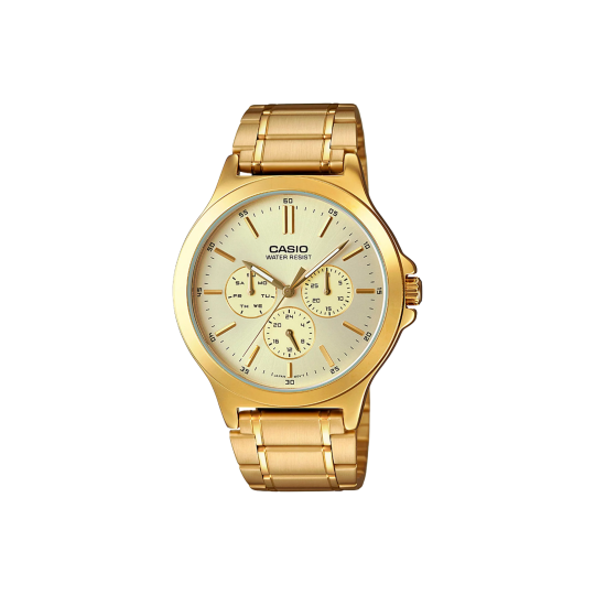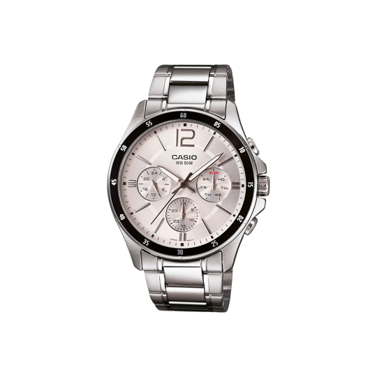 Fabricado con materiales de alta calidad, el Casio MTP-1374D-1A3VDF cuenta con una correa de acero inoxidable resistente, una caja elegante y un diseño cronógrafo que transmite sofisticación sin ser excesivo. Su cristal mineral protege la esfera contra rayaduras diarias, lo que lo convierte en un aliado duradero.